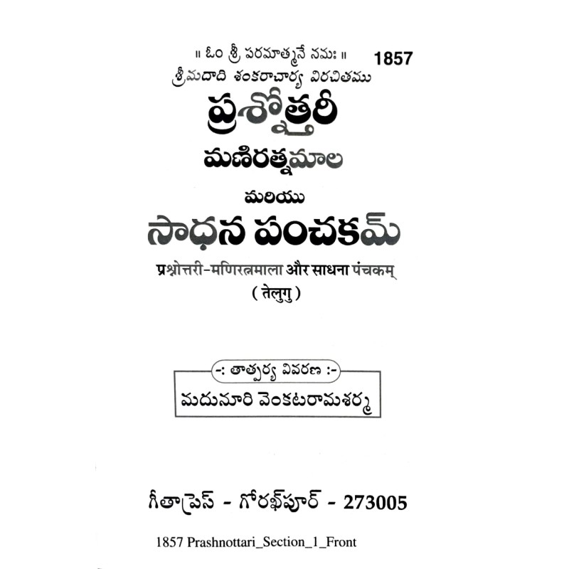 Prashnottari-ManiratnaMala and Sadhna Panchkam, Telugu